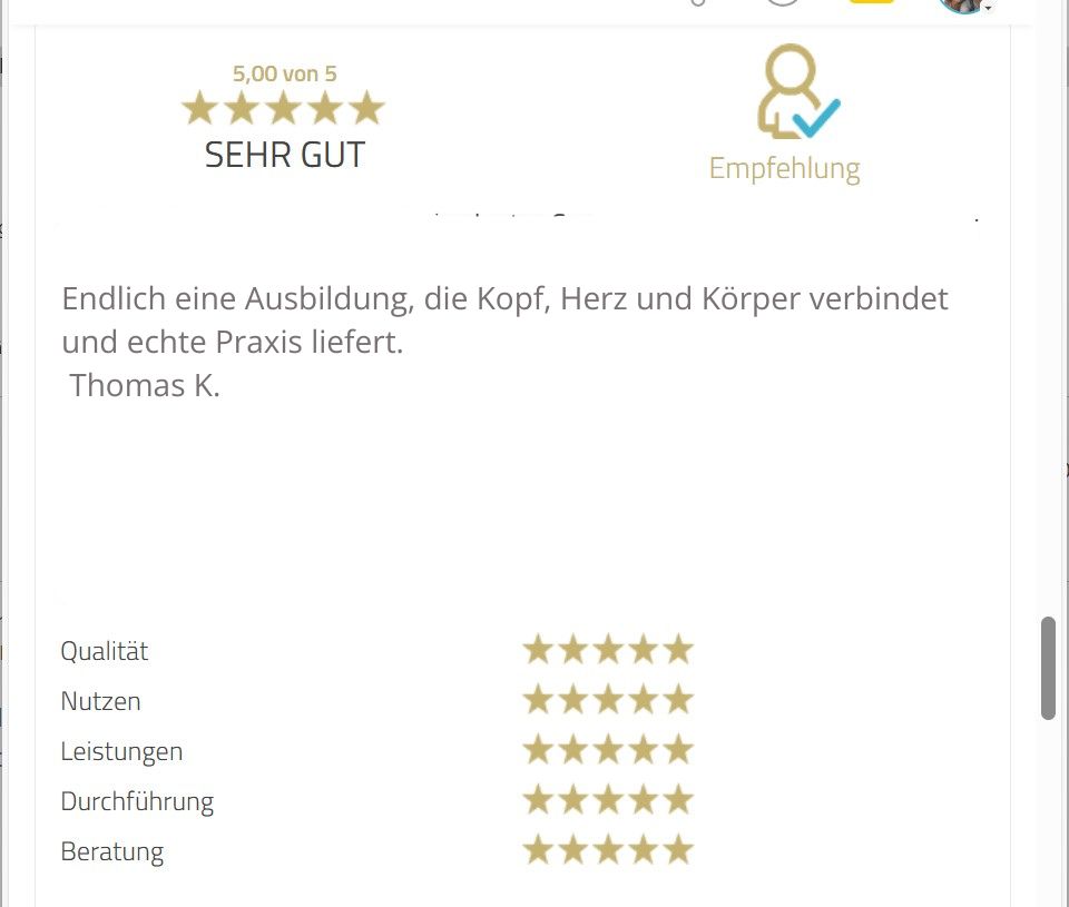 Begleitende Online-Supervision: Ergänzend zu den Wochenenden schaffen regelmäßige Online-Sessions und Q&As Raum für Fragen, Vertiefungen und den Austausch, damit der Lernprozess ganzheitlich bleibt.